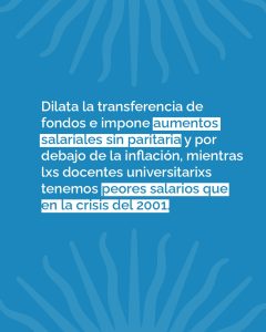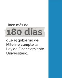 Hace más de 180 días que el gobierno de Milei incumple la Ley de Financiamiento Universitario y profundiza la pérdida salarial de docentes y nodocentes de la Universidad Pública.